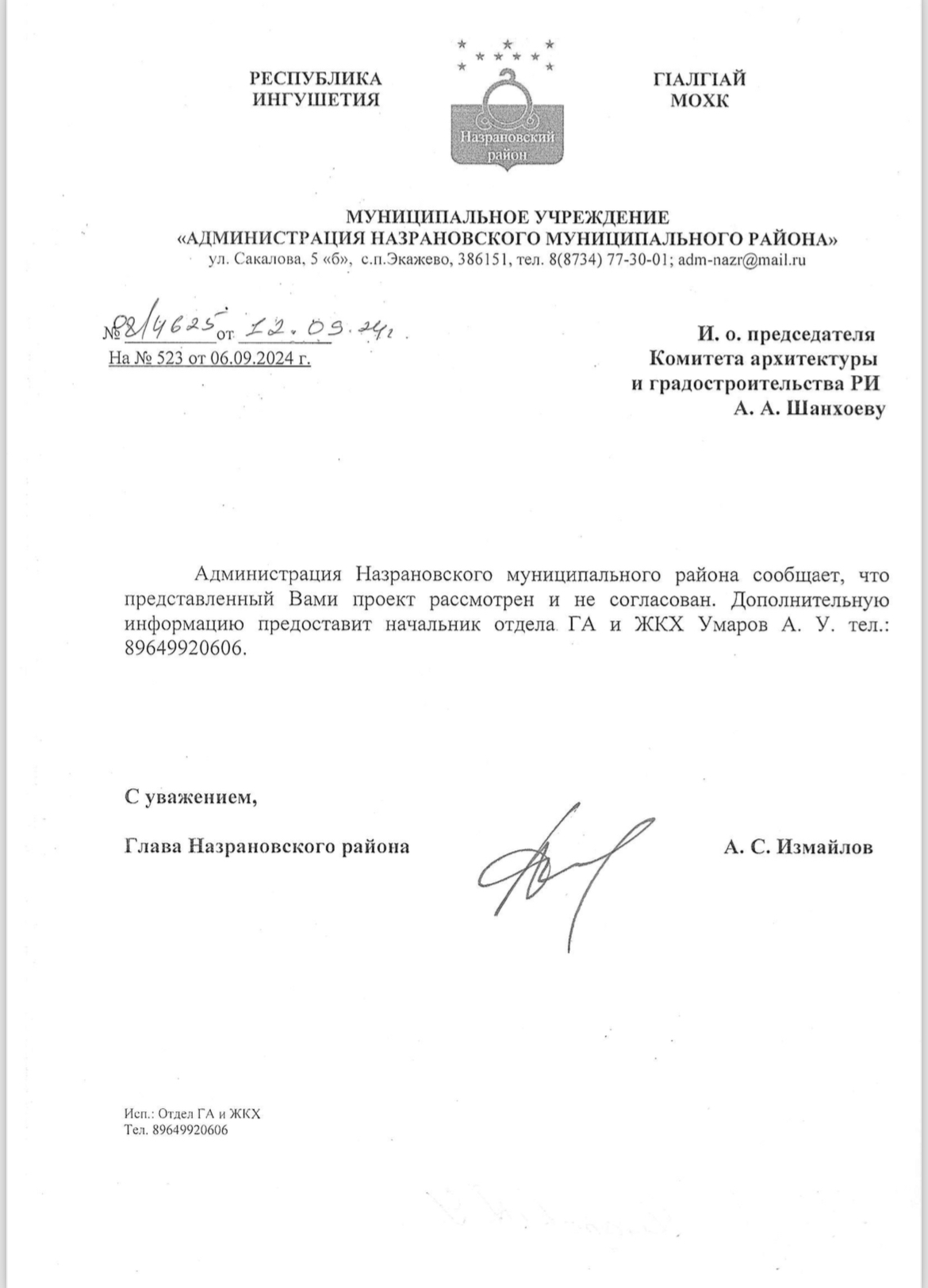 6 сентября администрация Джейрахского района направила заместителю председателя правительства Ингушетии М. Балахоеву ответ на присланный для согласования проект по установлению новых границ. В администрации отметили, что не могут его согласовать «в связи с тем, что имеются пересечения с границей схемы территориального планирования Джейрахского муниципального района Республики Ингушетия в районе Столовой горы (Мят-Лоам), Кавдоломит и с. Горбани».