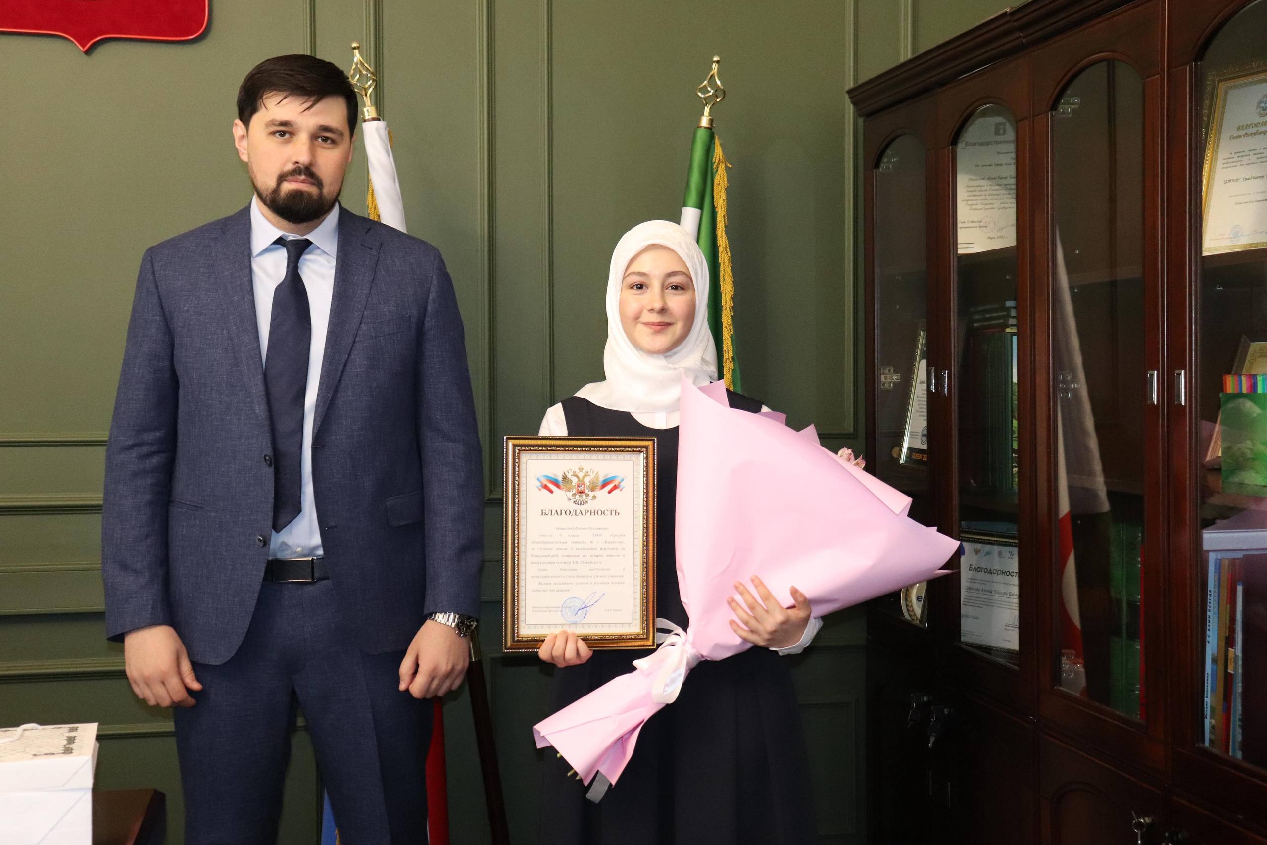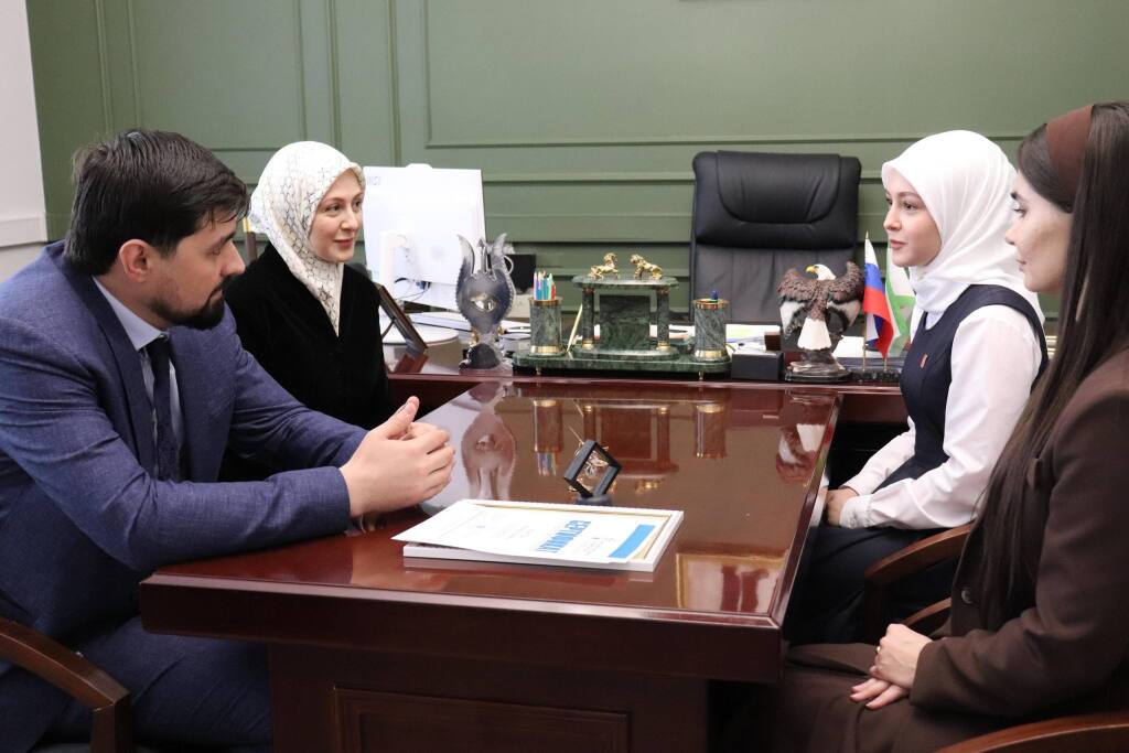 В министерстве образования и науки Ингушетии отчитались о встрече главы ведомства Ахмеда‑Башира Цороева с ученицей гимназии №1 Карабулака Фатимой Маматовой, ее матерью и педагогом Наташей Ведзижевой после международной олимпиады по истории авиации в Москве.